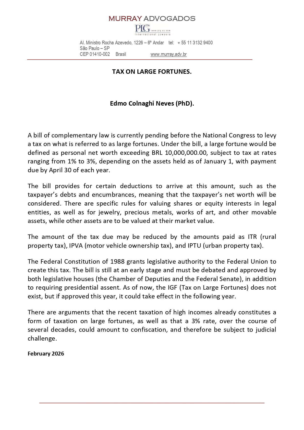 TAX ON LARGE FORTUNES